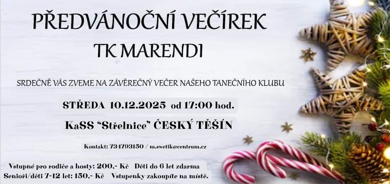 Srdečně Vás zveme na předvánoční večírek TK Marendi